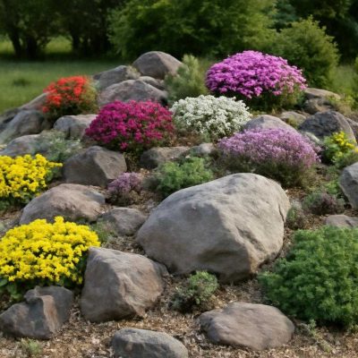 Горка, сложенная из слоистого известняка, задаёт образ скального отрога нижнего альпийского пояса. Я поддерживаю иллюзию...