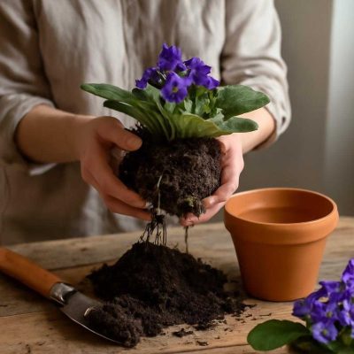Молодой стартер сенполии обычно похож на пушистый фонтан зелёных листьев, но корням тесно в временном...
