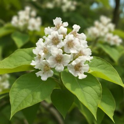 Катальпа из семейства бигнониевых напоминает южный фонтан зелени: крупные сердцевидные листья покачиваются, а длинные стручки-хлопушки...